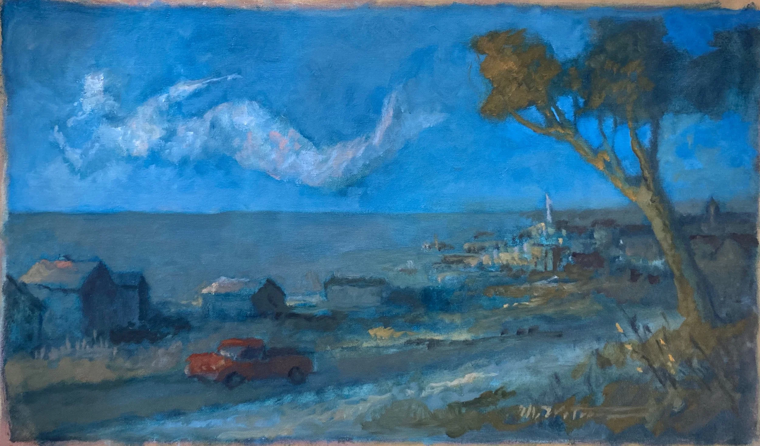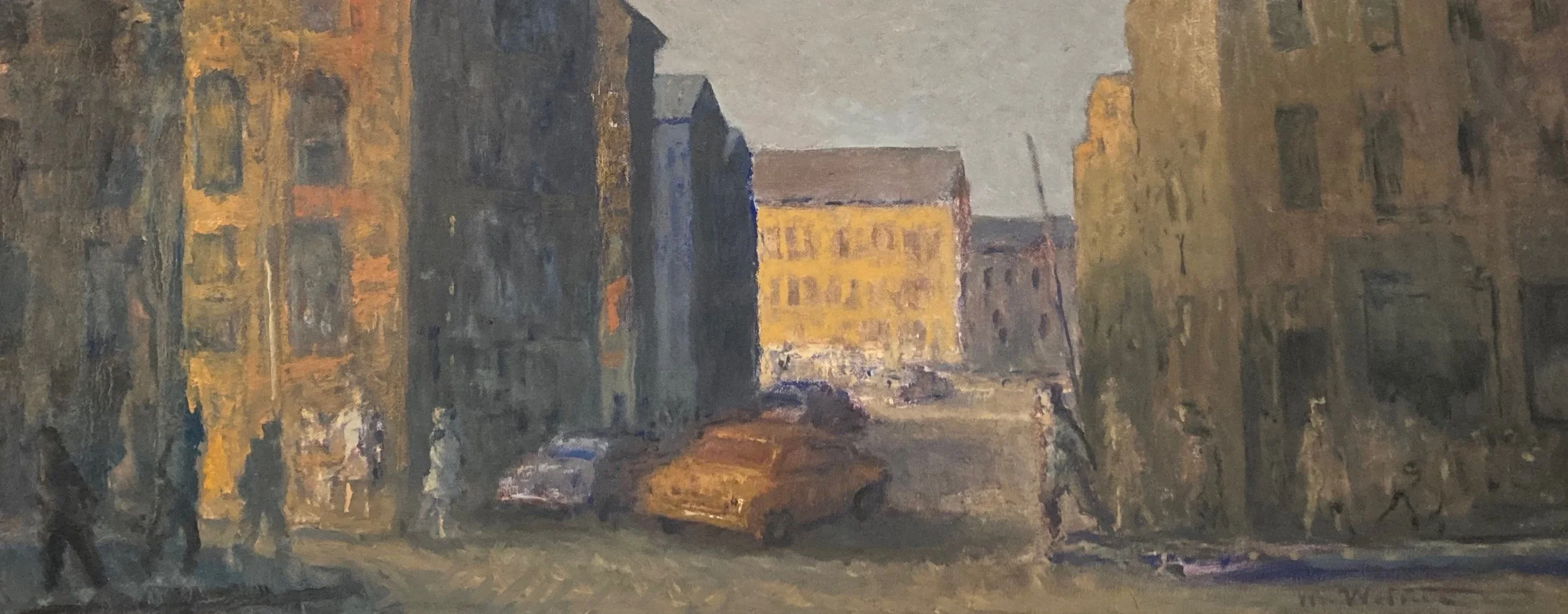 After returning home to Portland, Maine, this critically acclaimed Maine artist has had more than 3 decades of exhibitions, solo shows, television and radio interviews and commissions. His exhibitions included a 1988 retrospective at the University of Southern Maine which inspired art critic Edgar Allen Beem to observe that Waterman “possesses an authentic vision of Portland such as no other artist in the area quite manages.”
